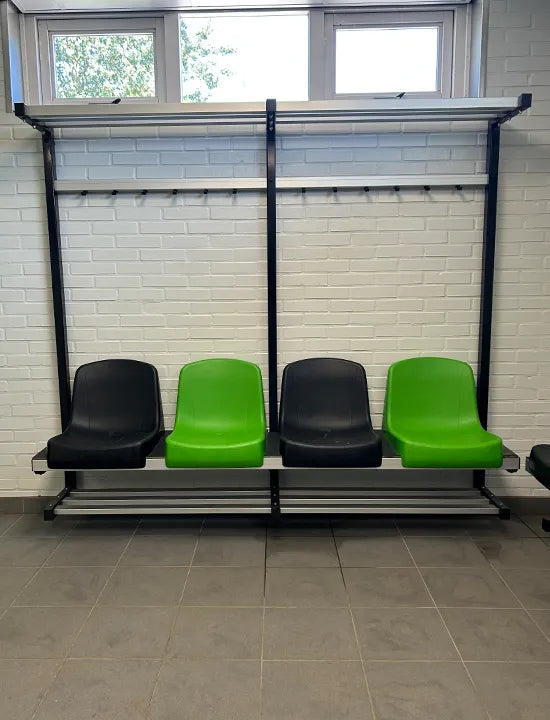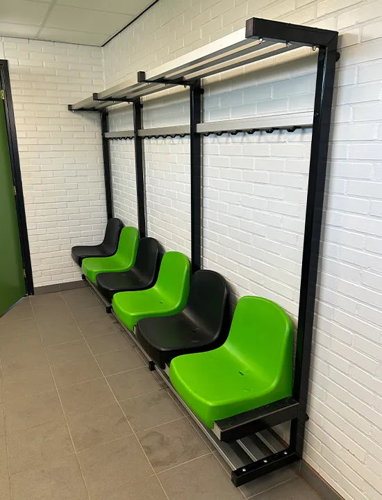 De kuipstoelen zijn uitgevoerd in de clubkleuren groen en zwart, waardoor de kleedkamers direct de herkenbare uitstraling van VV ’s Heerenbroek hebben gekregen. Deze stoelen bieden bovendien een hoog zitcomfort en zijn eenvoudig schoon te houden. Ideaal voor dagelijks gebruik.