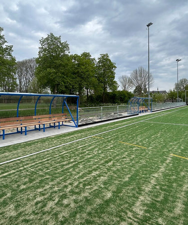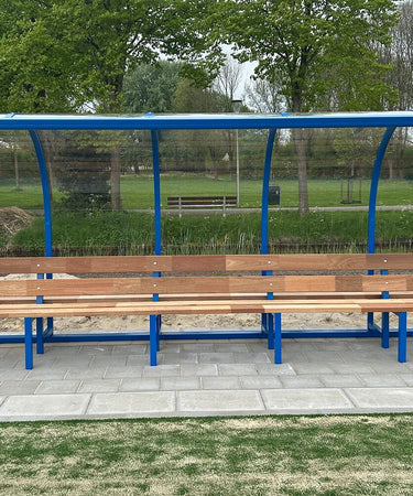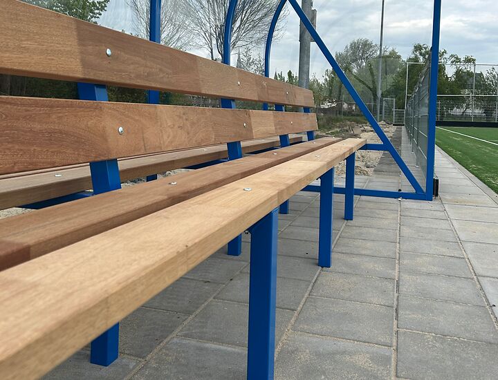 SKOR plaatste nieuwe hockey dugouts in de opvallend blauwe clubkleur. De dugouts zijn voorzien van Meranti banken en een duurzame coating. Deze combinatie zorgt voor een onderhoudsvriendelijke en representatieve oplossing langs de zijlijn. Spelers en staf beschikken hiermee over een comfortabele zitplaats tijdens trainingen en wedstrijden.