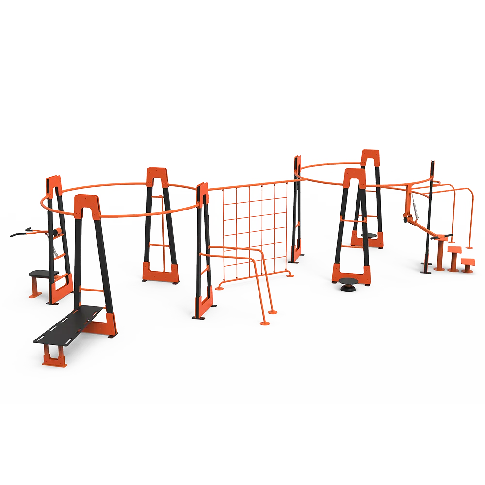 De Multi training park is een multifunctioneel outdoor trainingsstation met rekstangen, klimelementen en balancetoestellen. Geschikt voor 10 gebruikers tegelijk.