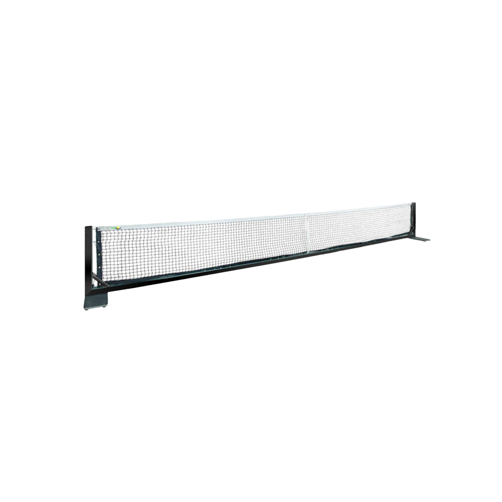Pickleball Professional-systemet er designet for maksimal stabilitet og brukervennlighet. Takket være de kraftige vektplatene i stål på begge sider, holder systemet seg sikkert på plass under intensiv bruk. Senterkoblingen i aluminium gir ekstra styrke og gjør hele systemet slitesterkt og vedlikeholdsfritt. Den interne trapesformede strammemekanismen i nettstolpene garanterer en tett og enkel nettstramming.