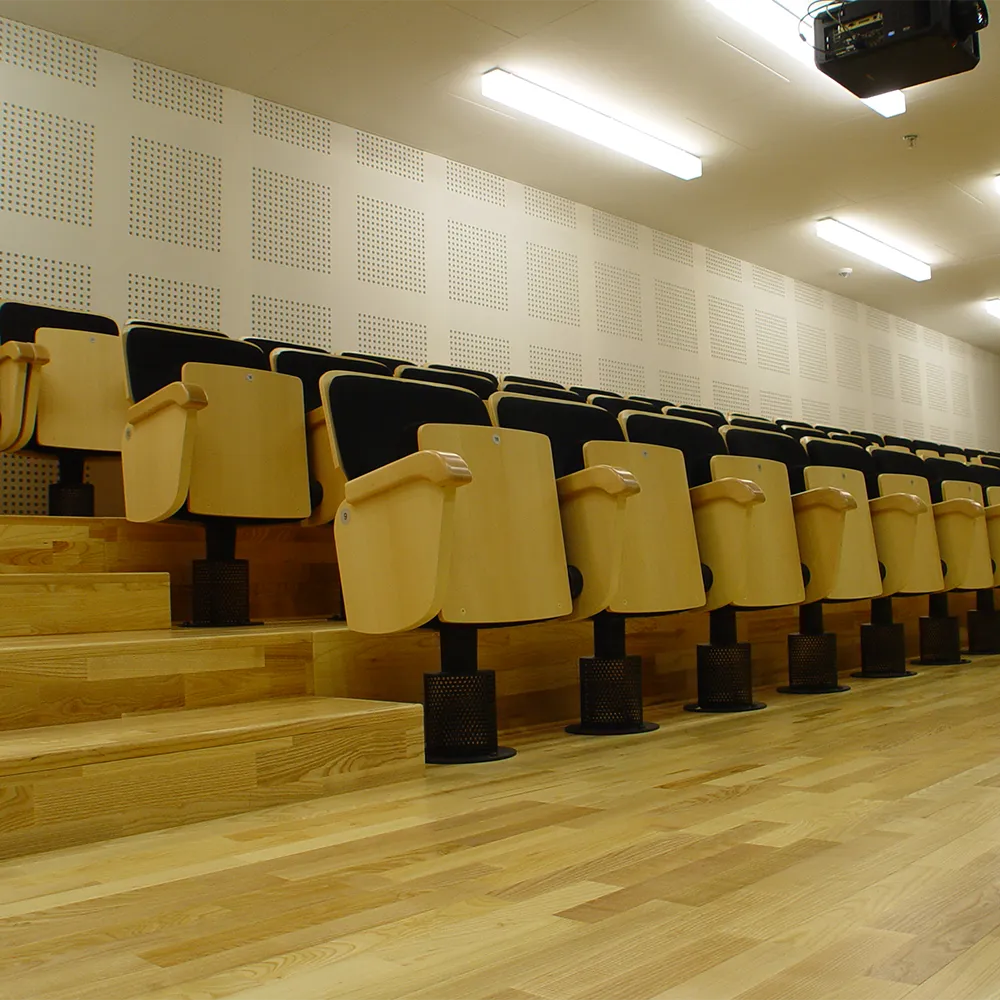 De Wagner PL is uitermate geschikt voor auditoria, conferentiezalen en publieke ruimtes waar comfort, functionaliteit en uitstraling belangrijk zijn. De geïntegreerde schrijftafel maakt deze stoel bijzonder praktisch voor vergader- en conferentiezalen, terwijl de houten details zorgen voor een luxe afwerking.